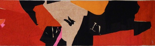 Wandteppich von Funk Lissy. Verschiedene Techniken, unten rechts signiert und datiert: Funk 1971-72. 83 x 1146cm.