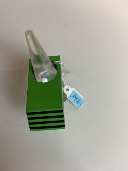 Wilhelm Tasso Mattar (Deutschland, 20. Jh.). Acryl. Grüne und schwarze Acrylschichten, asymmetrisch zu einem Keil geformt, sodass seitlich breite schwarze Streifen entstehen.