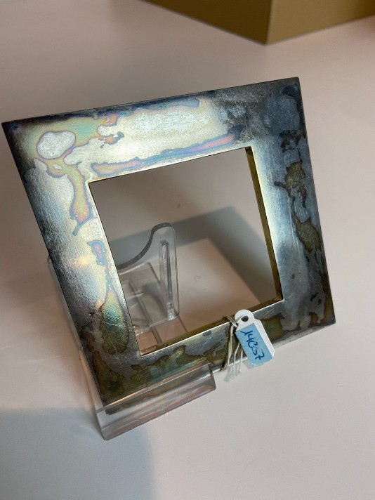 Max Iten (*1954 Unterägeri). Silber. Quadrat aus einer Silberplatte, zwei Seiten abgeschrägt. Im Zentrum quadratische Aussparung, einseitig mit umlaufendem Steg begrenzt. Meistermarke. 70g