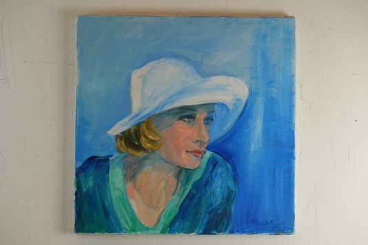 Der weisse Hut, 2002. Öl auf Leinwand, rechts unten signiert und datiert: Nabholz 02, verso auf Künstleretikette bezeichnet. 40 x 40. Ungerahmt