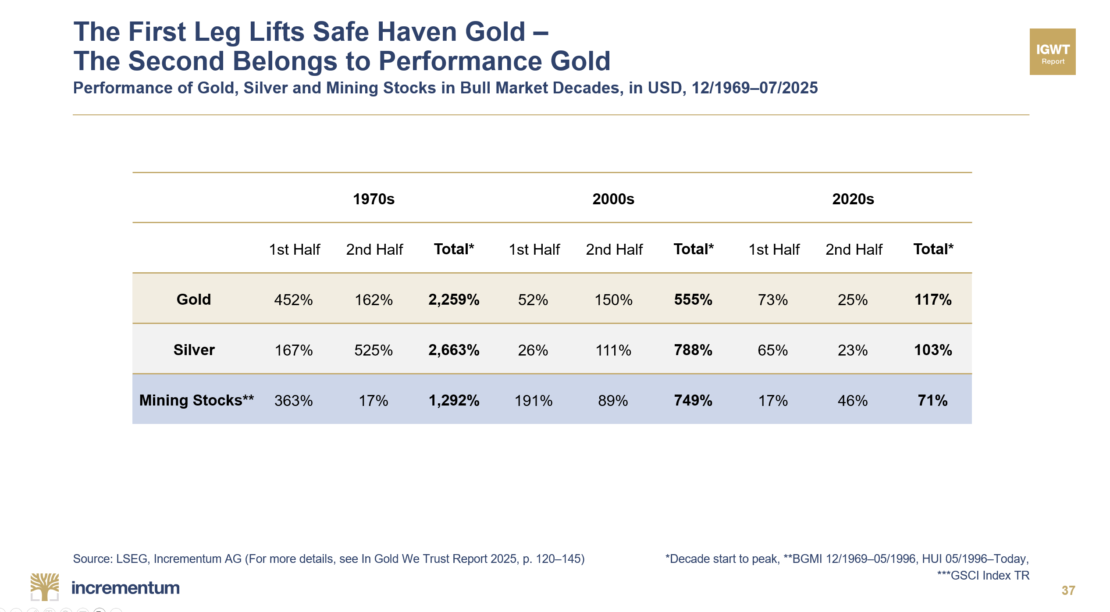 History shows: every Golden Decade starts with gold… but the second half is when silver & miners steal the show